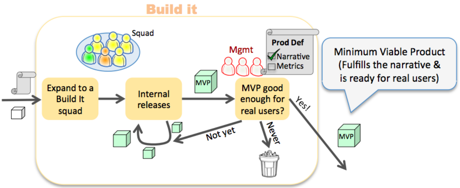 Built-It단게는 경영진과 스쿼드가 제품이 기본적인 내러티브를 만족하여 사용자에게 출시 될수 있을 정도로 충분하다고 판단하면 끝납니다.