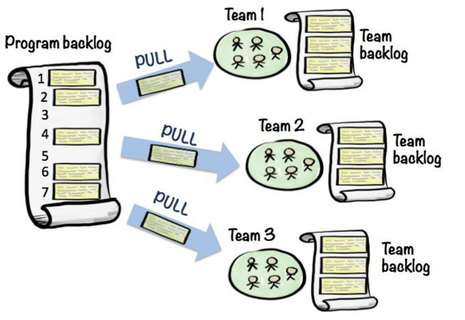 일부 팀은 상당히 독립적이며 자체 백로그가 있습니다. 플랫폼 팀과 같은 팀들은 함께 일하며 공유 프로그램 백로그에서 기능을 가져옵니다.