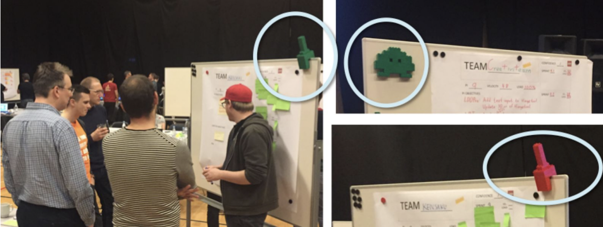 이른 오후까지 계획은 안정적이고(또는 가능한 한 안정적임) 최종 계획 검토 시간입니다. 같은 형식, 팀이 서로의 계획을 들을 수 있는 4개의 세션. 각 보드의 색상이 지정된 LEGO 블록은 상태 플래그와 같이 계획이 어제 이후로 많이 변경되었는지 여부를 나타내는 데 사용됩니다. 사람들이 어디로 갈지 결정하는 데 도움이 됩니다.